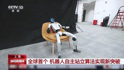 無論是坐着、靠着還是躺着,也不管身處草地、沙石,還是軟墊,這台人形機器人都可以像人一樣快速實現自主起身站立,動作平穩、乾脆利落。