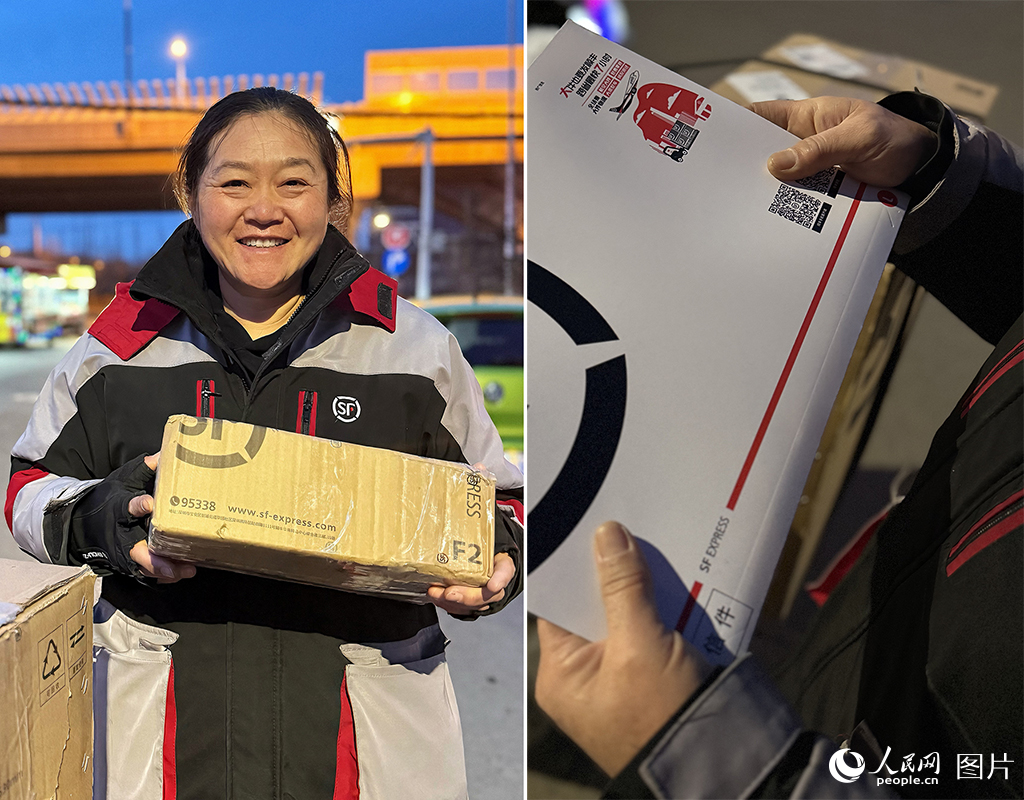 高玉梅正在派送快遞。人民網 孟佳澍攝