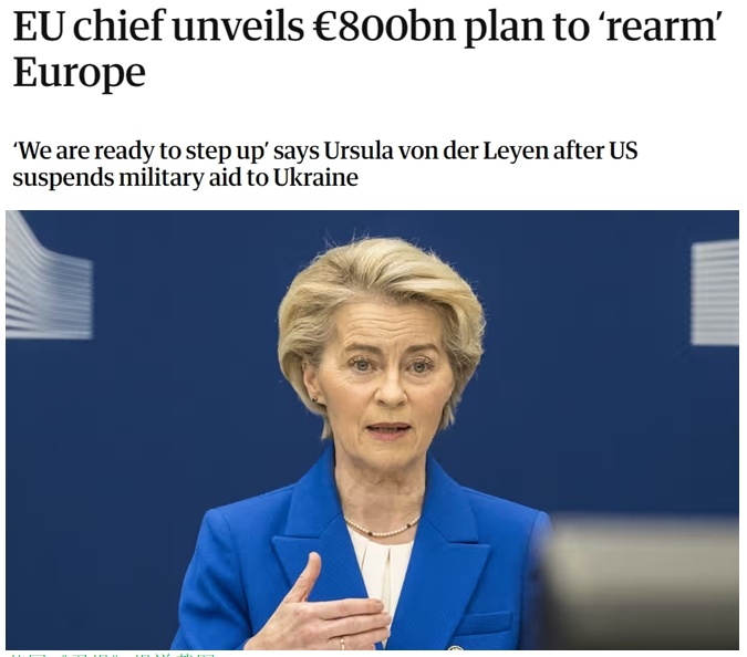 在日前舉行的歐盟特別峯會上,歐洲理事會同意由歐盟委員會主席馮德萊恩提出的“重新武裝歐洲”計劃。