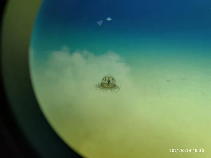 研究人員在深海底部採樣期間拍攝到的深淵水母