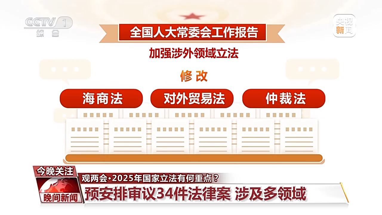 全國人大常委會工作報告顯示,2025年預安排審議34件法律案。