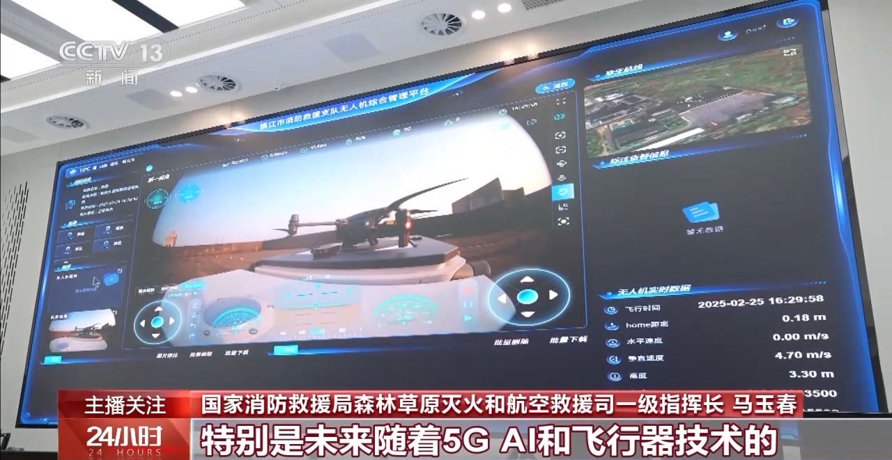 *中國消防學院信息工程系主任紀任鑫:*隨着我們社會經濟的發展,特別是城市化水平的快速提高,同時也帶來了安全隱患的增加。面對這樣的形勢,我們作為消防隊伍,必須以新質生產力來賦能新質戰鬥力。低空經濟的技術,它跟應急消防的工作結合,我認為是作為我們國家綜合性消防救援隊伍職責使命,在面對新形勢任務下的必然選擇,也是必然趨勢。