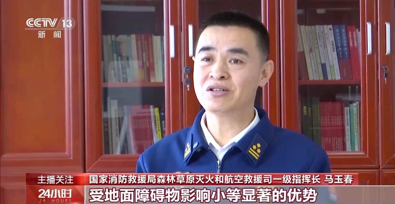 *國家消防救援局森林草原滅火和航空救援司一級指揮長 馬玉春:*無人機具有響應速度快,機動能力強,受地面障礙物影響小等顯著的優勢。遇有災情能夠快速到達現場,快速偵察情況,快速實施救援無人機、地面隊伍協同作戰的立體化救援模式,應該説解決了以往解決不了或者解決不好的問題,救援的模式也隨之發生了深刻的變化。