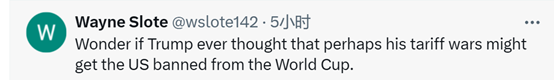 “不知道特朗普有沒有想過,也許他的關税戰可能會讓美國被禁止參加世界盃。”