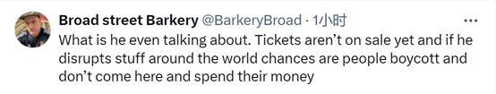 “他到底在説什麼。門票還沒有開賣,如果他在世界各地擾亂秩序,人們很可能會抵制,不會來這裏花錢”。