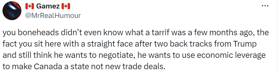 有加拿大網友批評説,“你們這些傻瓜,幾個月前甚至不知道關税是什麼,特朗普兩次出爾反爾後,你們還一本正經地坐在這裏,還以為他想要談判,他想利用經濟槓桿使加拿大變成一個州,而不是想要新的貿易協議。”