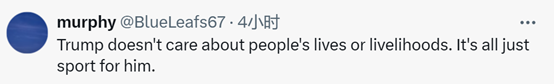 “特朗普根本不關心人們的生命和生計。對他來説,這只不過是一場遊戲。”
