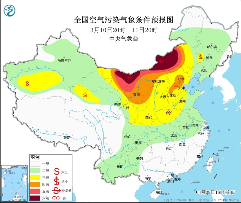 受大風天氣影響,預計9日夜間,新疆南部、寧夏中部、內蒙古中部和東南部、吉林西部、黑龍江西南部等地的部分地區有揚沙或浮塵天氣。