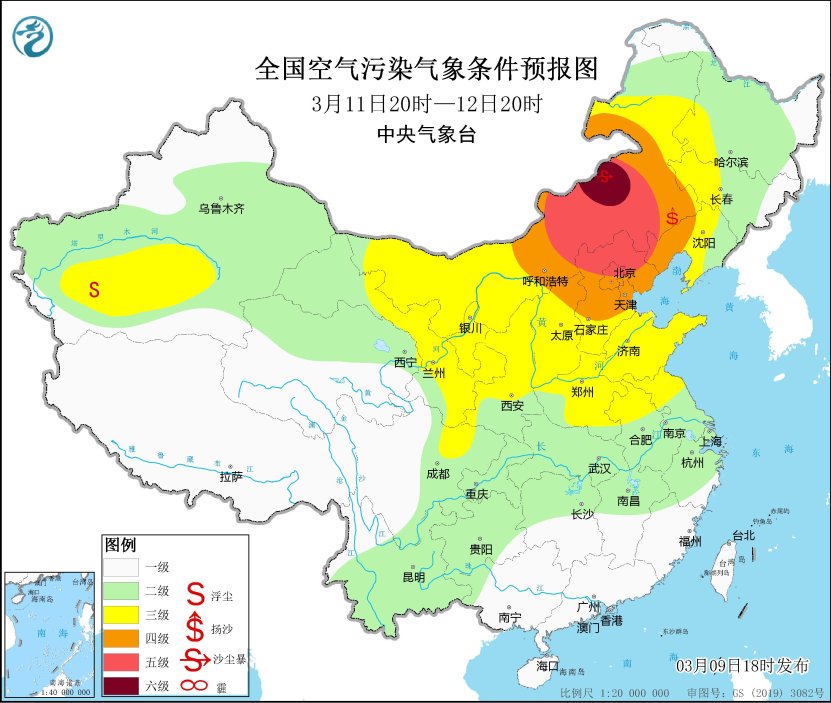 此外,9日夜間至11日,華北中南部、黃淮等地大氣擴散條件較差,部分地區有輕度霾至中度霾,局地有短時重度霾。