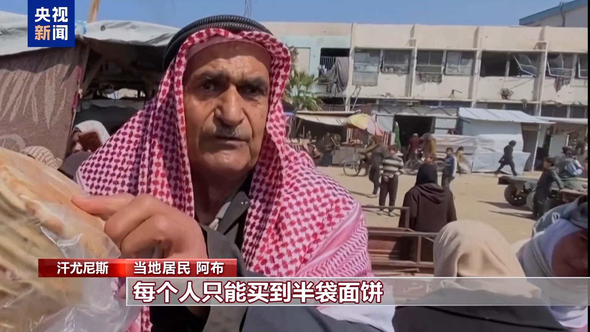 *當地居民 阿布:*我們只能買到這袋麪餅。邊境口岸被關閉了,到處都已經關閉了。我們該怎麼辦呢?每個人只能買到半袋麪餅。我該怎麼説呢,我們正處於危機之中。我們無能為力,我早上6點出門,下午1點回到家,只能買到這袋麪餅。