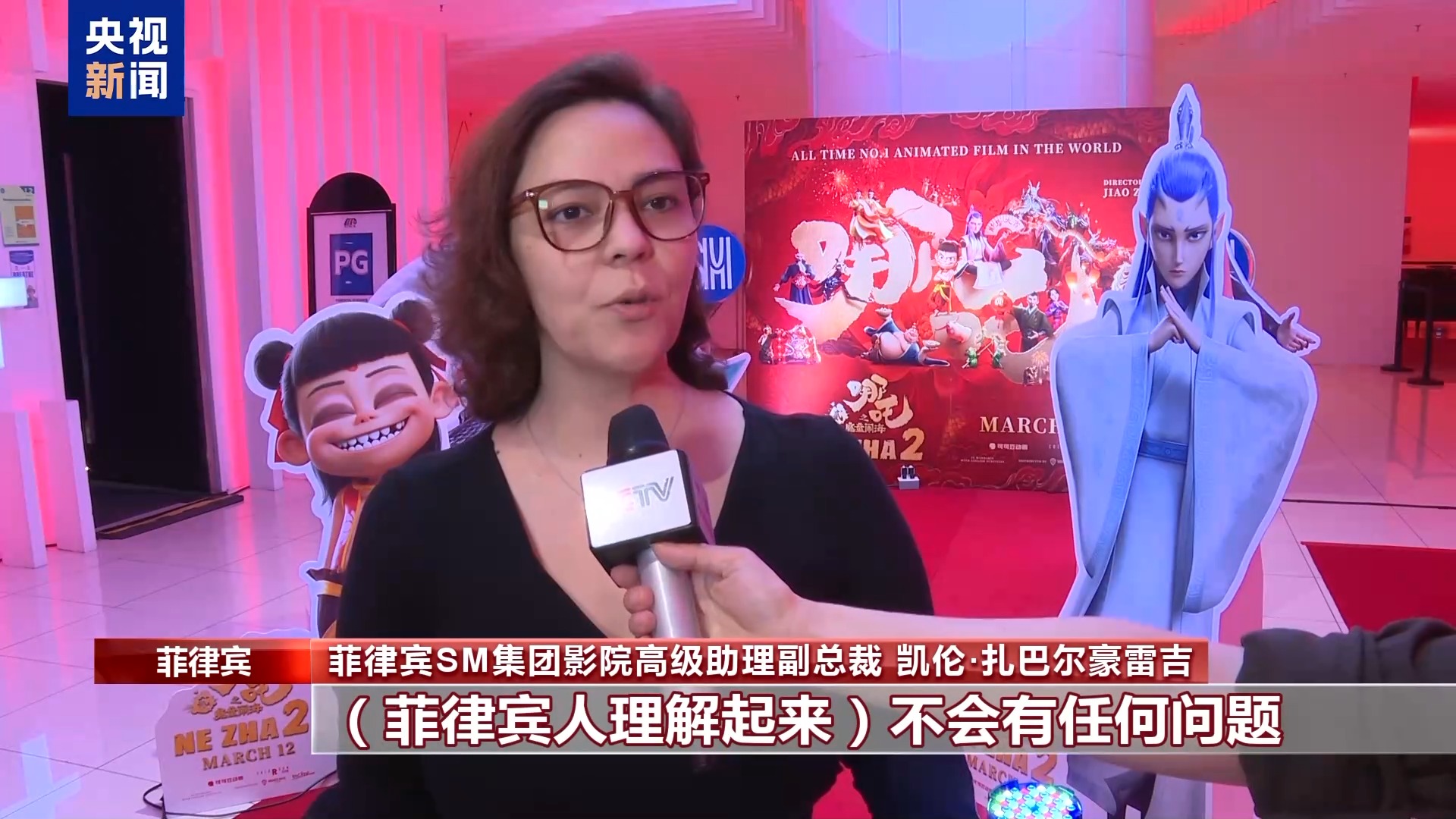 *總枱記者 黃錚錚:*這裏是位於菲律賓奎松市的一家電影院。大家可以看到在我的身後已經充滿了“哪吒”的元素。中國電影《哪吒之魔童鬧海》在這裏首映。