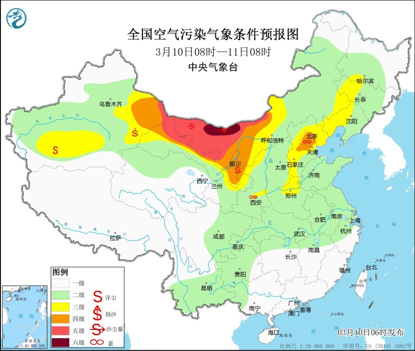 中央氣象台今晨發佈了大風和沙塵暴兩個藍色預警,這應該是今年以來北方最大規模的沙塵過程。 今天大風最強在新疆東部的百里風區,局地陣風可達10級以上。今天下午到晚上,沙塵最強的區域在內蒙古西部,枴子湖-海力素一帶,可能出現強沙塵暴。明後兩天,沙塵會繼續向東推進。