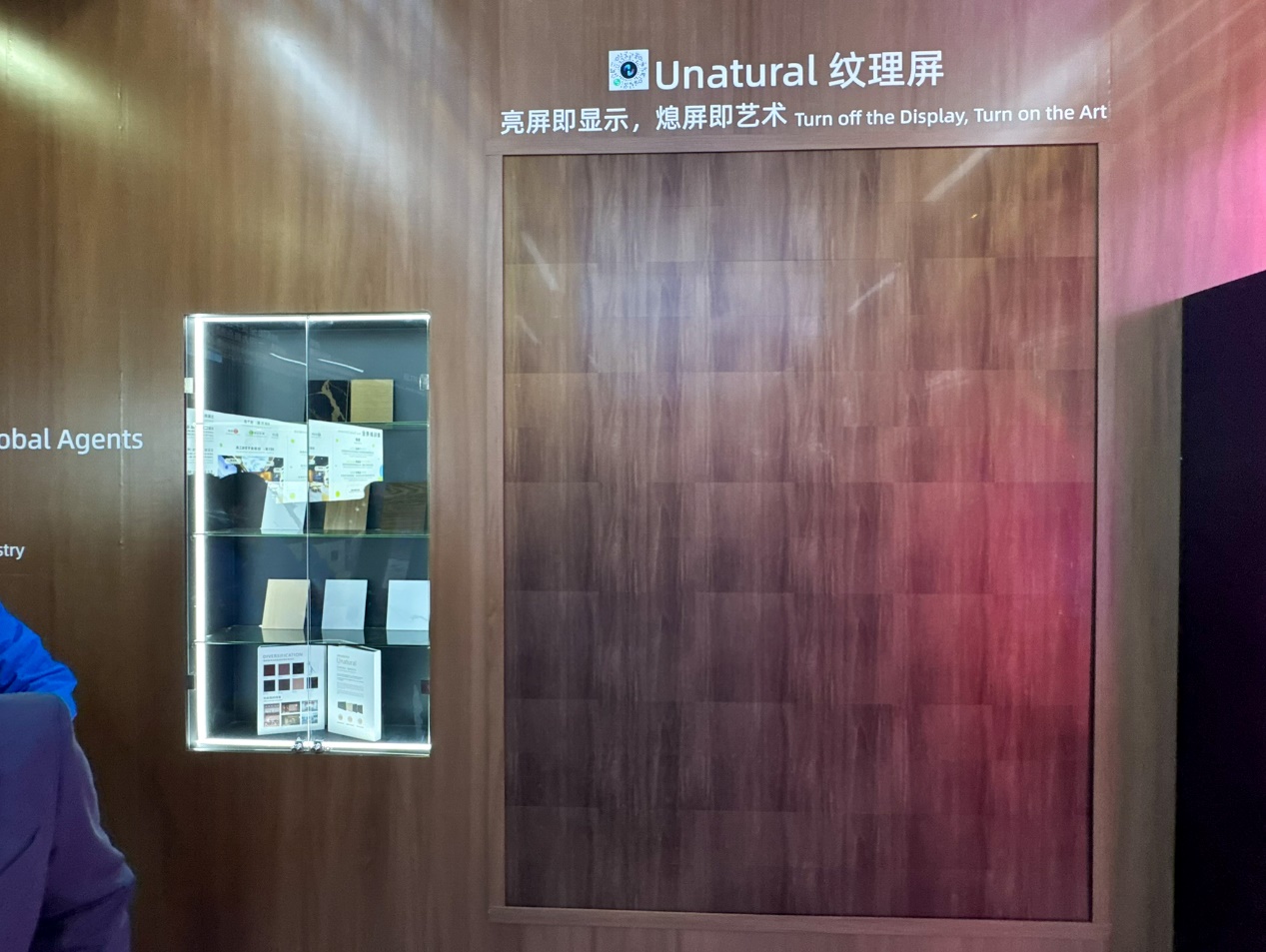 據介紹,這款 Unatural 紋理屏,具備高亮度、低光損、低反光的特性,真正實現了 “熄屏即藝術,開屏即顯示” 的創新視覺理念。通過納米光學層處理技術,擁有 16 種以上微型光學結構以及 10 多種可定製的紋理開發方案,無論是温馨的家居環境、高端的酒店大堂、熱鬧的零售空間,還是現代化的辦公樓,Unatural 紋理屏都能自然融入場景,讓顯示不再是突兀的 “外掛”,而是成為建築空間的有機組成部分,賦予空間全新活力與商業價值。