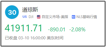 截至當天收盤,道瓊斯工業平均指數比前一交易日下跌890.01點,收於41911.71點,跌幅為2.08%;標準普爾500種股票指數下跌155.64點,收於5614.56點,跌幅為2.70%;納斯達克綜合指數下跌727.90點,收於17468.33點,跌幅為4.00%。