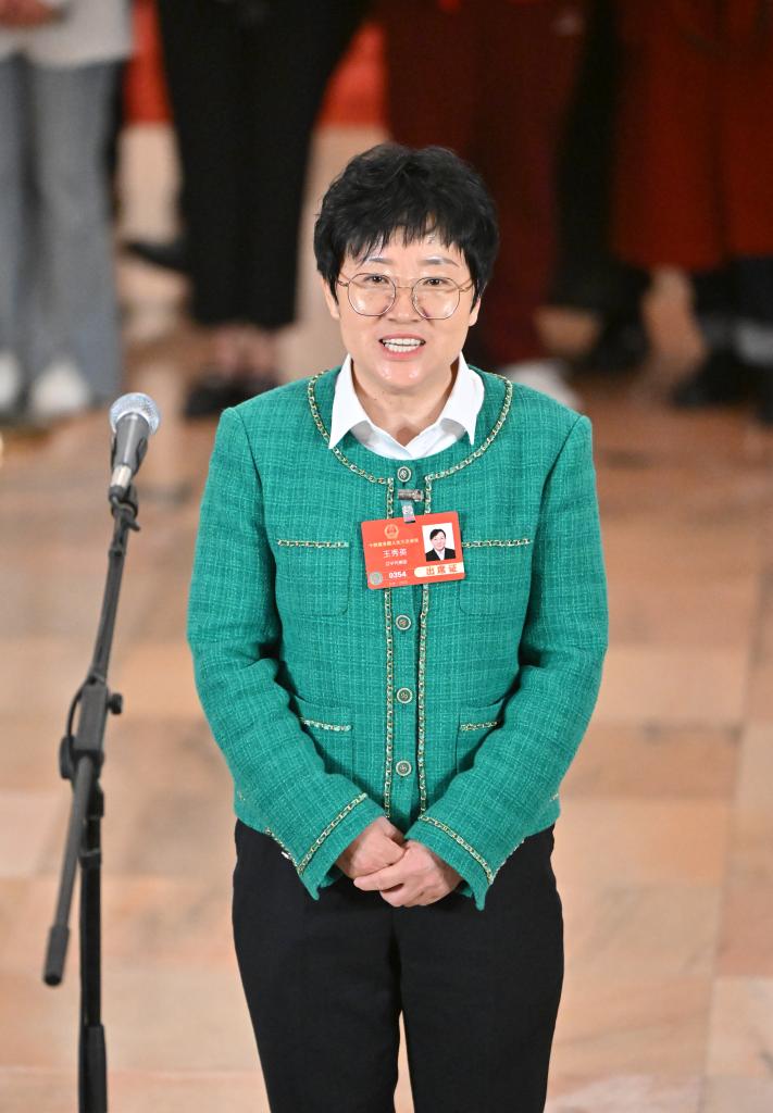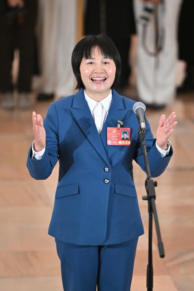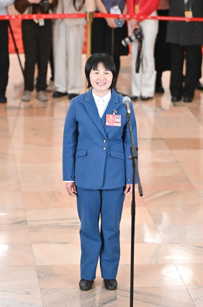3月11日,第十四屆全國人民代表大會第三次會議第三場“代表通道”集中採訪活動在北京人民大會堂舉行。這是全國人大代表王秀英接受媒體採訪。