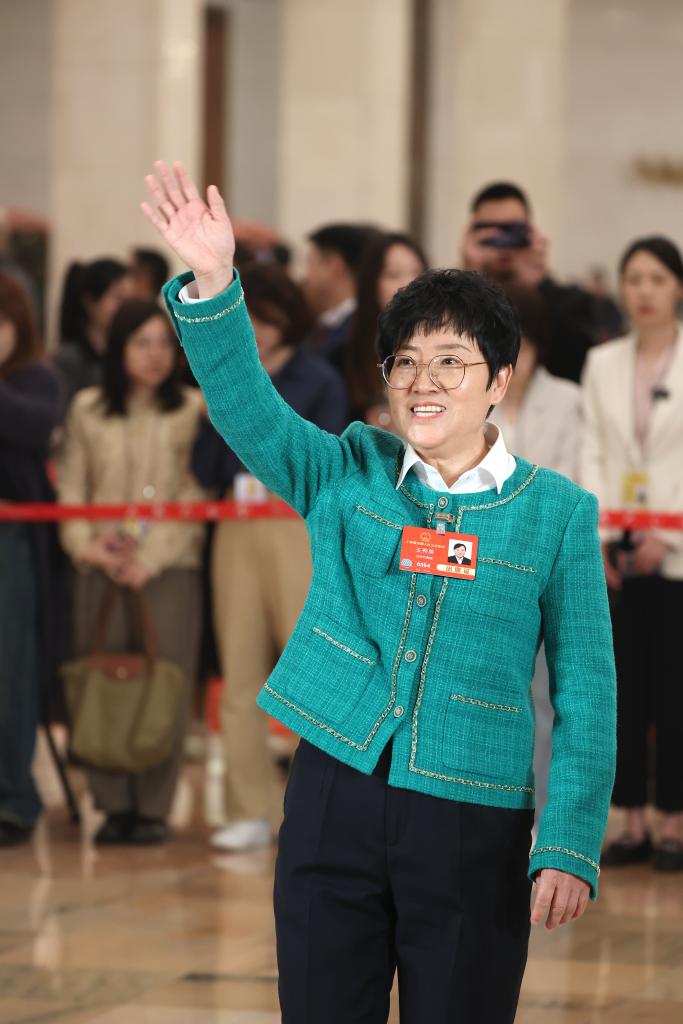 3月11日,第十四屆全國人民代表大會第三次會議第三場“代表通道”集中採訪活動在北京人民大會堂舉行。這是全國人大代表王秀英入場。