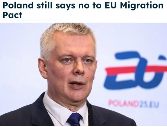 波蘭總理圖斯克今年2月表示,波蘭不會執行《移民與難民庇護公約》,也不會執行任何強制安置來自其他歐盟國家移民的規定。