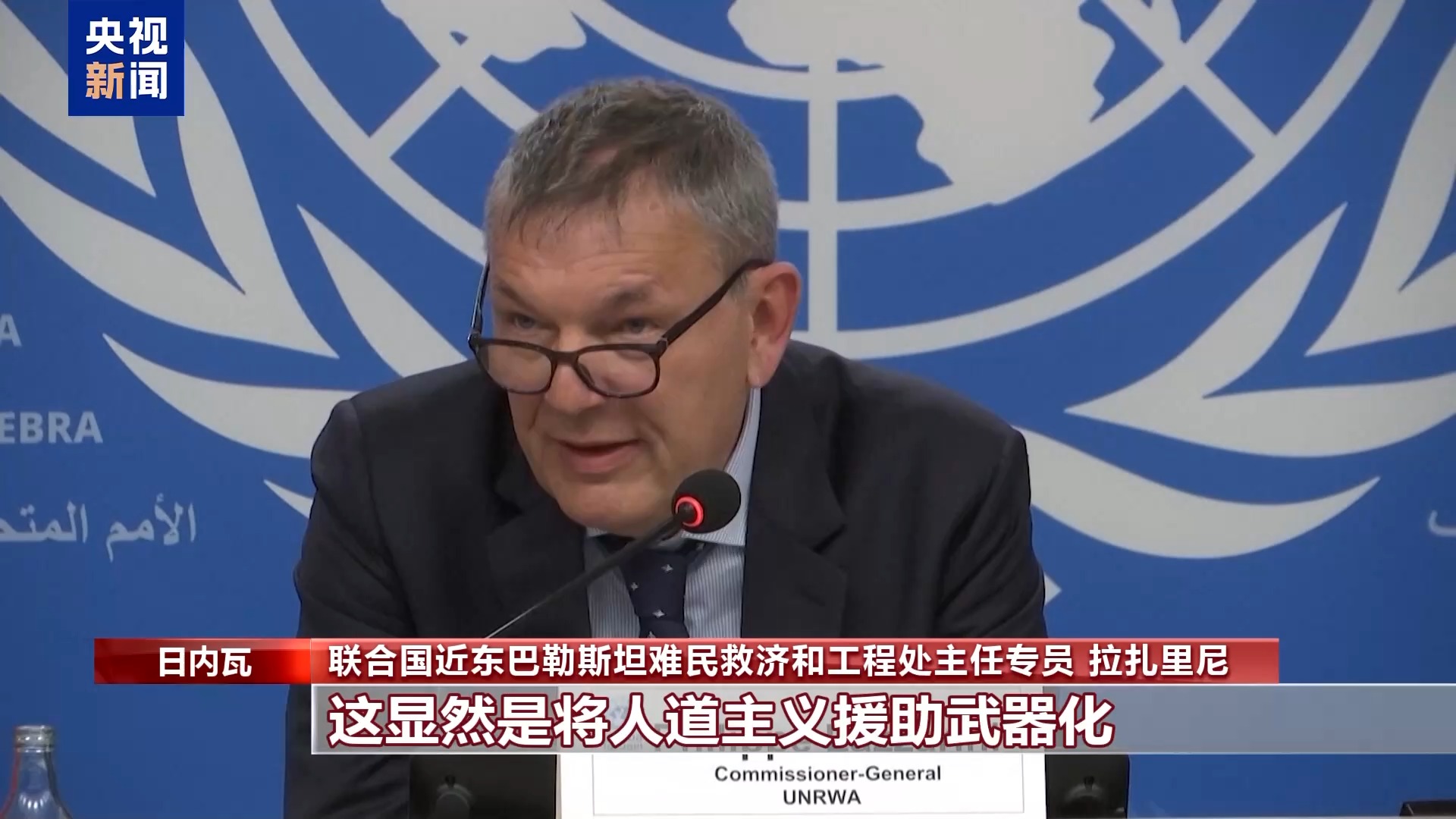 *聯合國近東巴勒斯坦難民救濟和工程處主任專員 拉扎里尼:*我不知道以色列真正的意圖是什麼,但無論是何種意圖,這顯然是將人道主義援助武器化,用以控制加沙地帶。如果封鎖所有過境點,就會造成這樣一種局面,即把基本的人道主義援助甚至食品,作為實現政治或軍事目標的工具,這違背了任何國際人道主義準則。