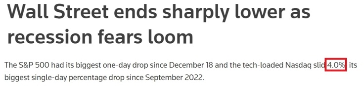 由於擔心關税戰可能導致美國經濟增長放緩,美國股市納斯達克綜合指數當地時間10日下挫近4%,跌至六個月來最低點。