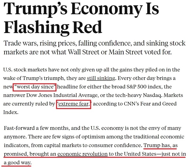 “特朗普確實如他在競選中承諾的那樣在美國掀起了一場經濟革命——只不過是以負面的形式。”