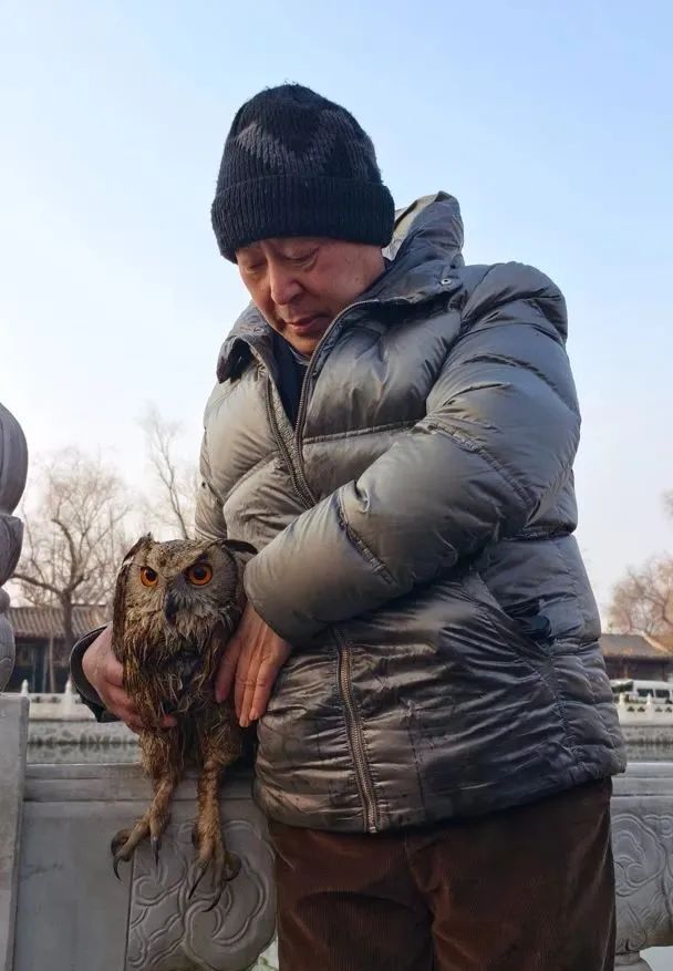 原來,3月8日8時30分左右,地安門派出所接警:後海北沿有貓頭鷹落水需要救助。