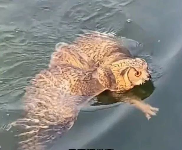 大家原以為貓頭鷹會害怕人類,誤把“營救”當成捕捉或攻擊,但貓頭鷹好像是意識到了這是好心人在幫助它,朝着人羣“撲騰”,越遊越近。不一會,拿掃帚的熱心羣眾“扒拉”到了它,陳先生果斷抓住貓頭鷹的翅膀將其抱上岸。