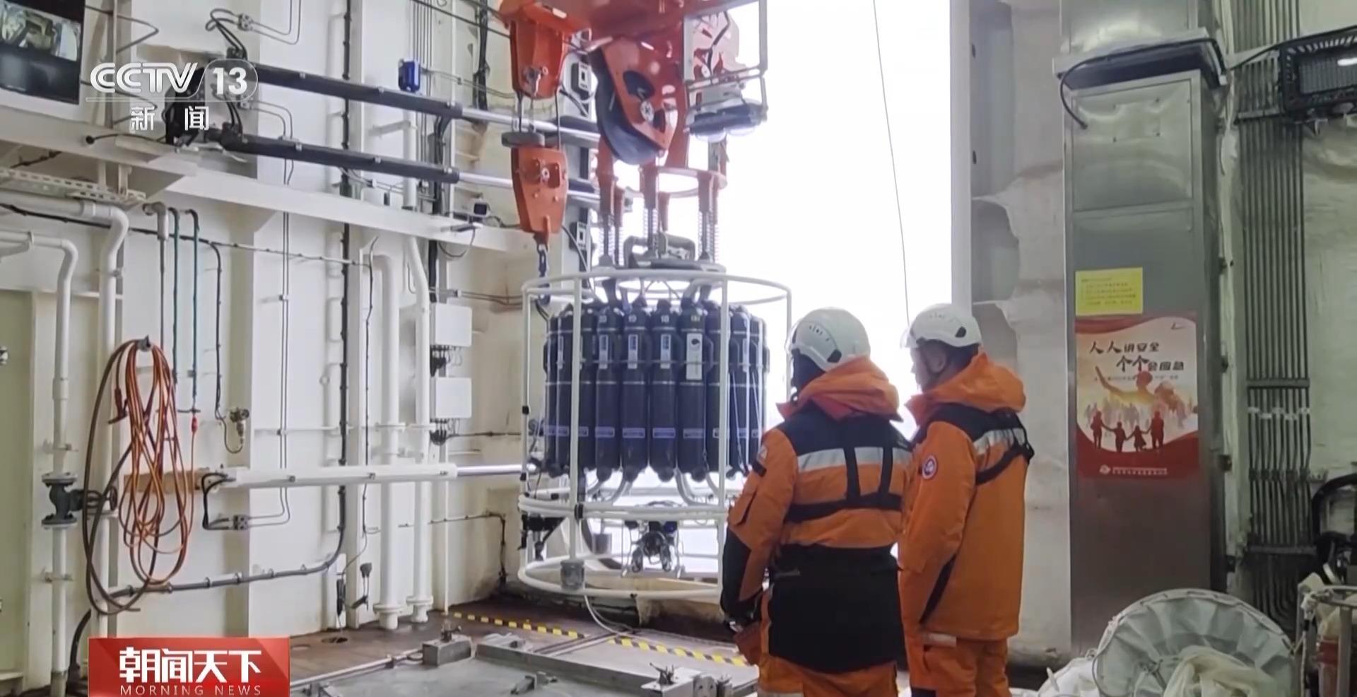 除了拋棄式温鹽深儀,CTD多參數物理海洋觀測系統,也是研究物理海洋開展水文調查的主要科考儀器。在船員的遙控下,CTD以每分鐘60米的速度下放。