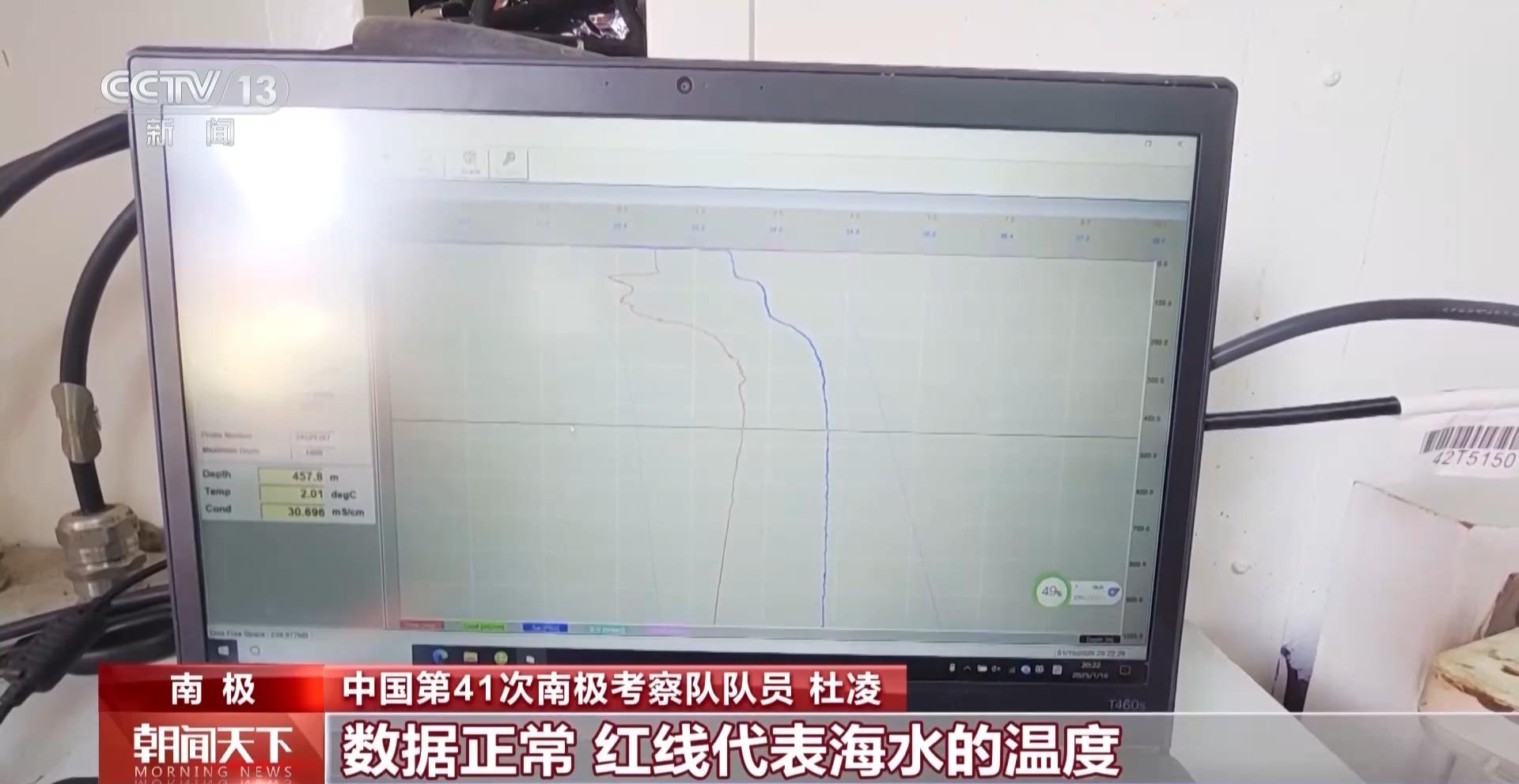孫永明告訴記者,目前“雪龍2”號航行的位置,位於南大洋的一個鋒面交界區,也就是兩個不同性質水團交界的地方。在這種地方,水文結構複雜多變。科考隊員沿着航行的方向,每隔一定的經緯度就投放一個拋棄式温鹽深儀,就可以做出一個隨位置和深度變化的温度和鹽度的斷面來。投放過程中,科考隊員的電腦監測系統即時顯示數據,隨着海水深度不斷增加,代表不同類型的數據線持續延長,直至觀測結束。