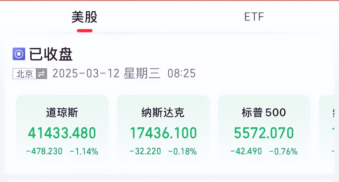 【環球網財經綜合報道】當地時間週二(3月11日),美股市場經歷了一波下跌行情。截至收盤,道瓊斯工業平均指數較前一日下跌478.23點,至41433.48點,跌幅達1.14%。標準普爾500指數和納斯達克綜合指數也分別下滑0.76%和0.18%。