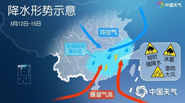 今起四天(3月12日至15日),南方地區新一輪大範圍降雨和強對流過程上線,湖南、江西、浙江、福建、廣西、廣東局地或遭遇大暴雨,江南、華南部分地區降雨時需警惕短時強降水、局地雷暴大風和冰雹。