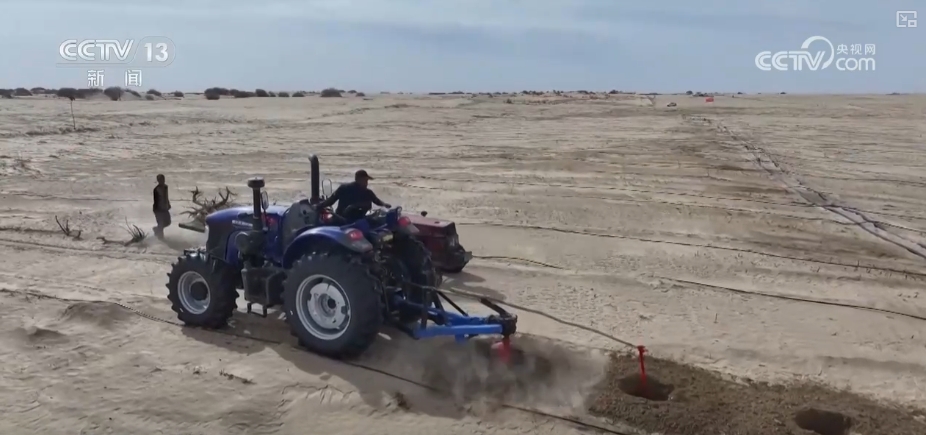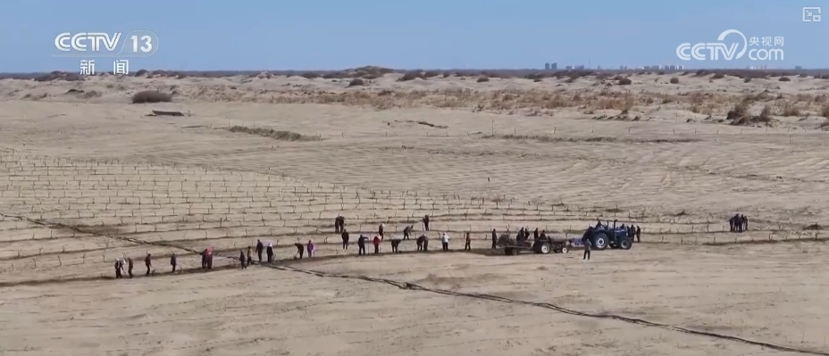 位於塔克拉瑪干沙漠南緣的新疆策勒,眼下,當地幹部羣眾忙着栽種紅棗、梭梭,鋪設滴管,向沙漠腹地挺進。