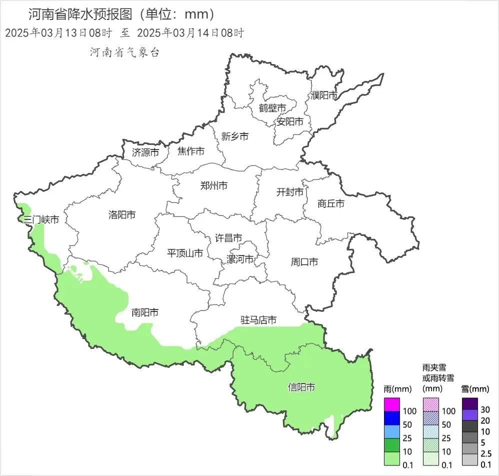 14日,全省陰天,黃河以南大部有小雨,南部部分縣市有中雨,西部高海拔山區有雨夾雪或小雪。