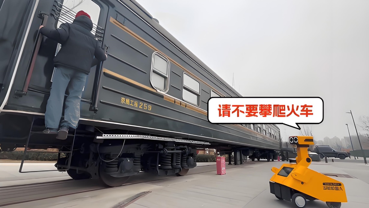 巡檢機器人能精準識別包括抽煙、騎行、遛狗、摔倒、打架、踐踏草坪等危險行為,並通過內置的語音系統及時發出提醒與勸阻。當發現危險行為時,如有人正攀爬火車,一旦確認違規行為,巡檢機器人將鎖定目標靠近,通過內置語音系統發出提醒勸阻。通過巡檢機器人的看護,節省了約40%的安保人員,降低安全事故率達到50%。