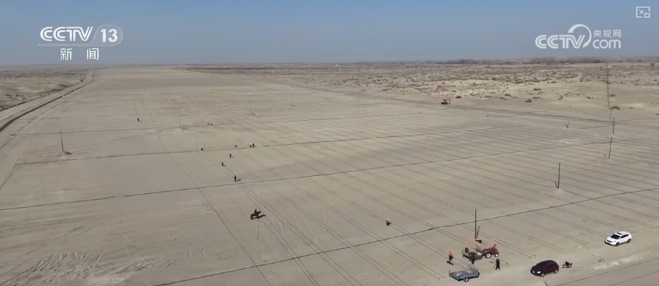 在新疆喀什嶽普湖縣巴依阿瓦提鄉,村民們正忙着鋪設滴灌帶。隨着流動沙丘被推平整治,一條300米寬的梭梭林生態隔離帶已現雛形。在滴灌帶鋪設、水泵安裝、電網等基本工作完成後,這裏就可以開始種植梭梭。