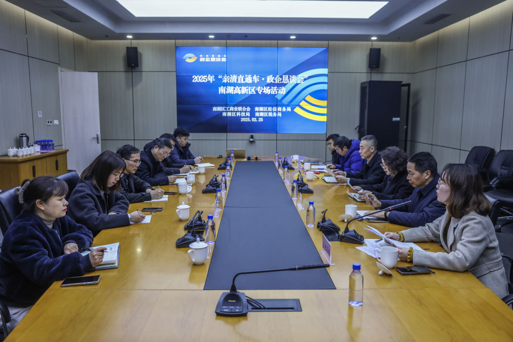 2月25日,浙江省嘉興市南湖區工商聯召開“親清直通車·政企懇談會”,為企業排憂解難,助力民營企業穩健發展。新華社記者 徐昱 攝
