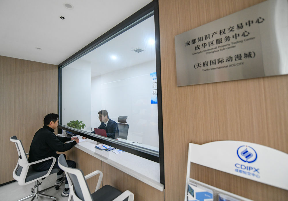 2月27日,民營企業工作人員在成都知識產權交易中心成華區服務中心諮詢相關政策。新華社記者 王曦 攝