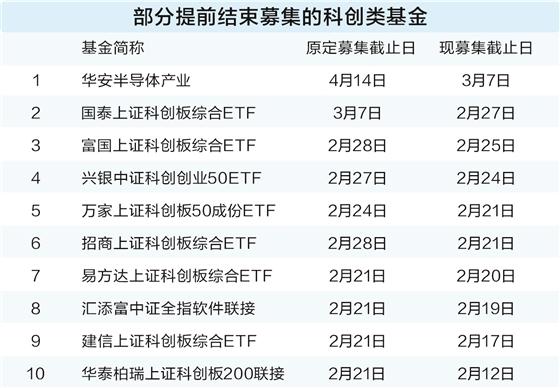 證券時報記者注意到,在被動指數型基金中,多隻上證科創板綜合ETF以及興銀中證科創創業50ETF、萬家上證科創板50成份ETF、匯添富中證全指軟件聯接、華泰柏瑞上證科創板200聯接等提前結束募集;主動權益基金方面,華安半導體產業等提前結束募集,體現出資金對科技類標的較強的配置意願。
