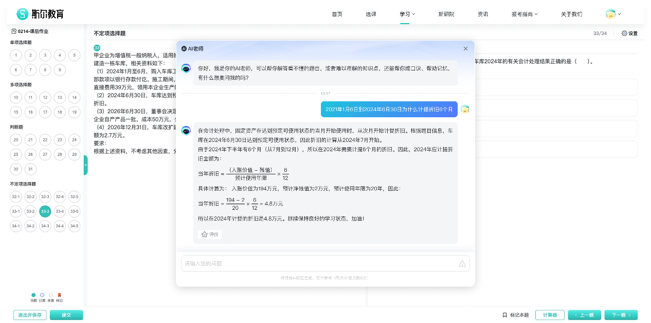 斯爾教育在AI技術應用方面的探索與實踐,是其近年來最值得關注的亮點。今年2月,斯爾教育正式上線了“AI老師”功能,以24小時即時對話答疑再次升級用户體驗。