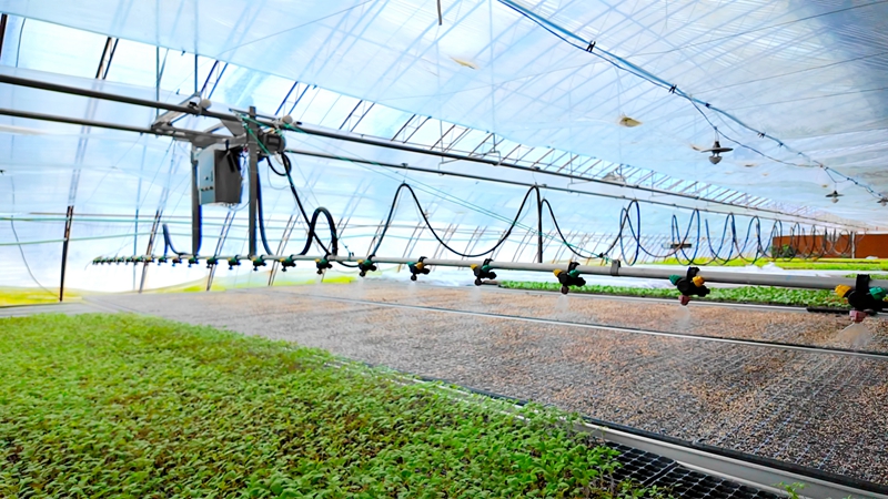 陝西省榆林市定邊縣沃野農業開發有限公司的車間裏,全自動穴盤育苗點種機運轉不停,裝盤、精準點種、蛭石覆蓋、噴淋灌溉等工序一氣呵成;育苗大棚裏,整齊排列的苗牀間,工人們穿梭其中,嫺熟地進行着分盤作業。