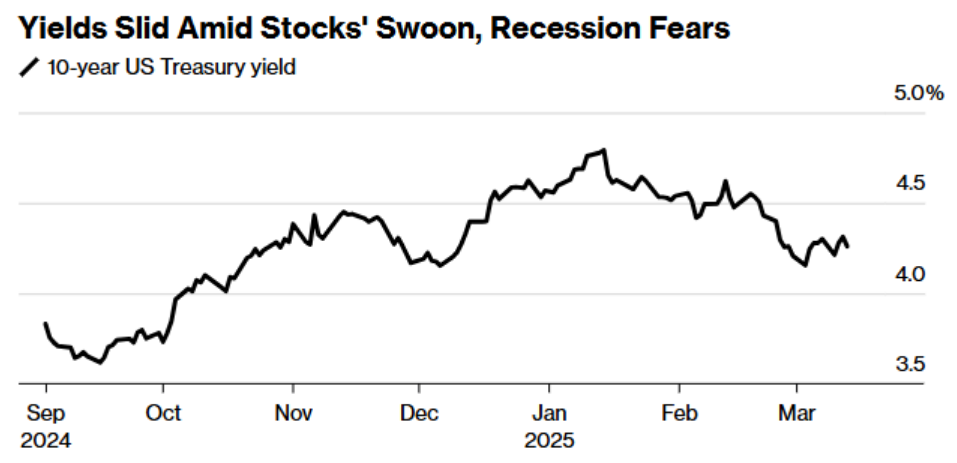 受此消息影響,華爾街對美國經濟增長的擔憂打壓股市,並紛紛買入美國國債。美債收益率全線走低,2年期美債收益率跌2.95個基點報3.955%,3年期美債收益率跌3.36個基點報3.9475%,5年期美債收益率跌3.33個基點報4.0295%,10年期美債收益率跌3.65個基點報4.2701%,30年期美債收益率跌3.96個基點報4.5881%。