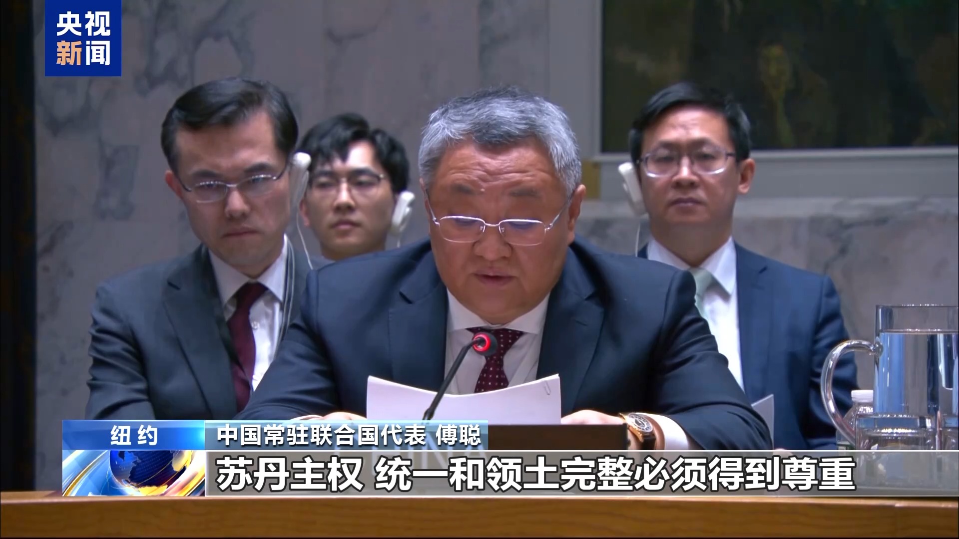 *中國常駐聯合國代表 傅聰:*一週前,安理會發表主席新聞談話,對快支部隊等政治派別簽署政治憲章,宣佈組建“平行政府”表示嚴重關切。中方注意到,有關方日前進一步簽署“過渡憲法”,此舉可能加劇局勢緊張,加大分裂風險,同衝突解決的目標背道而馳。中方重申,蘇丹主權、統一和領土完整應得到尊重,聯合國憲章和國際法應得到遵守。