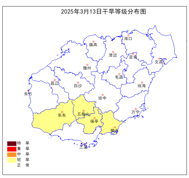 2025年3月13日20時海南島氣象乾旱等級分佈