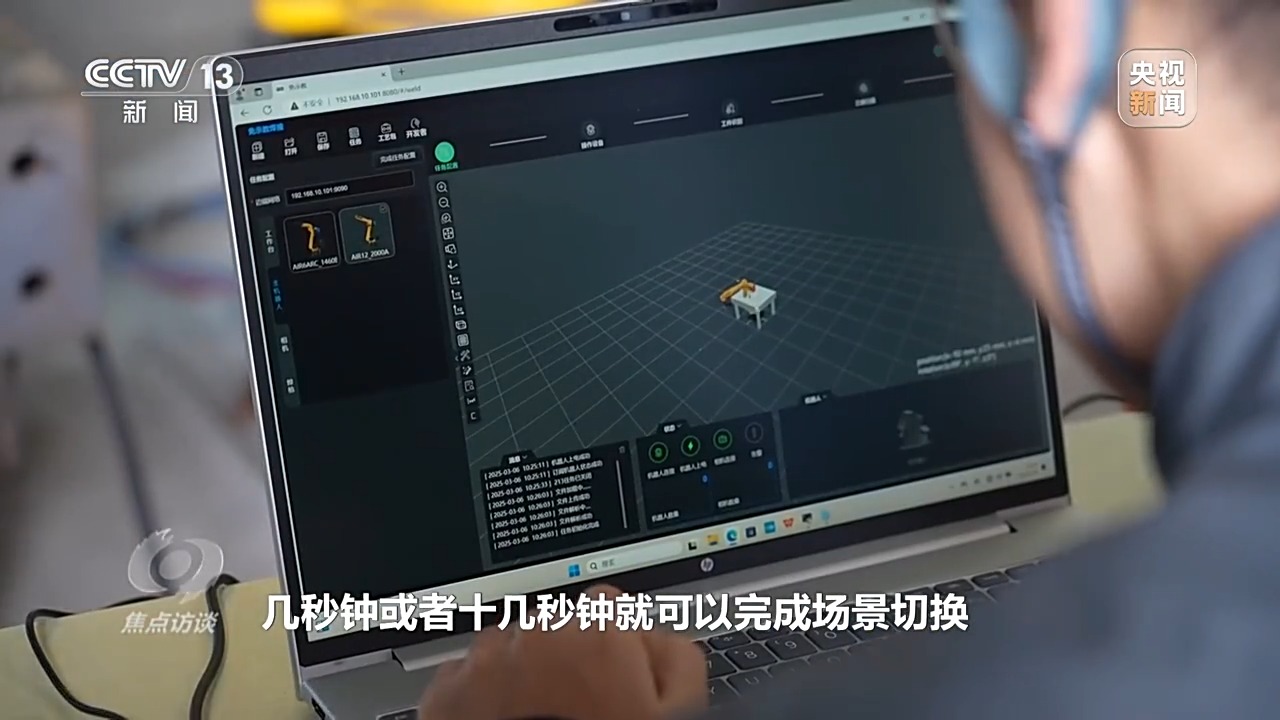 *智能機器人工程師 王晨光:*如果要換活兒或者換產線,那就需要人工去重新編程,最簡單的編程工作也需要花費半天或者一天的時間,還有調試,而繹焊機器人加持了人工智能,幾秒鐘或者十幾秒鐘就可以完成場景切換,能夠適應個性化的複雜生產場景。