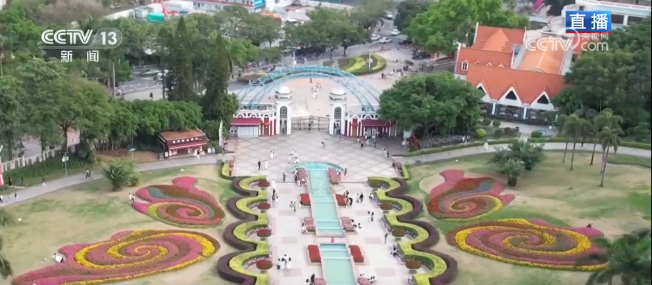 在雲蘿花園的旁邊是雲台花園,它建成的時間更早。從空中俯瞰,佔地16.6萬平方米的雲台花園,中西合璧的園林景觀非常別緻。作為“花城明珠”,這裏四季繁花似錦、爭芳鬥豔,常年一派“花如海,春滿園”景象。