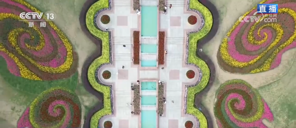 中軸線兩側矮牽牛、三色堇、一串紅、金魚草和孔雀草等草花拼成蝴蝶狀色塊,色彩繽紛。園中的誼園草坪、吊瓜樹草坪自2022年元旦開放後,已成為市民春日露營的好去處。