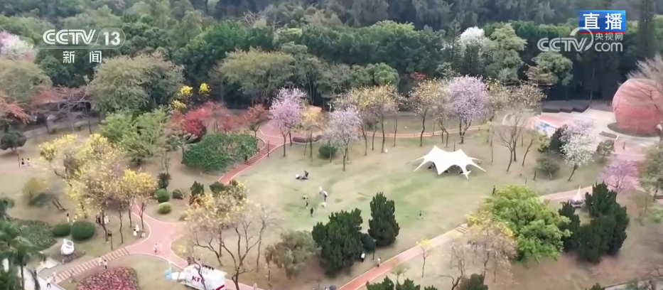 *央視網消息:*春日融融,嶺南大地到處花團錦簇。眼下,佔地23公頃的廣州雲蘿植物園十幾種多年生和喬木花卉正值盛花期,絢爛花海吸引着市民遊客前來踏春賞花。
