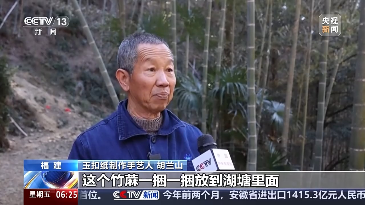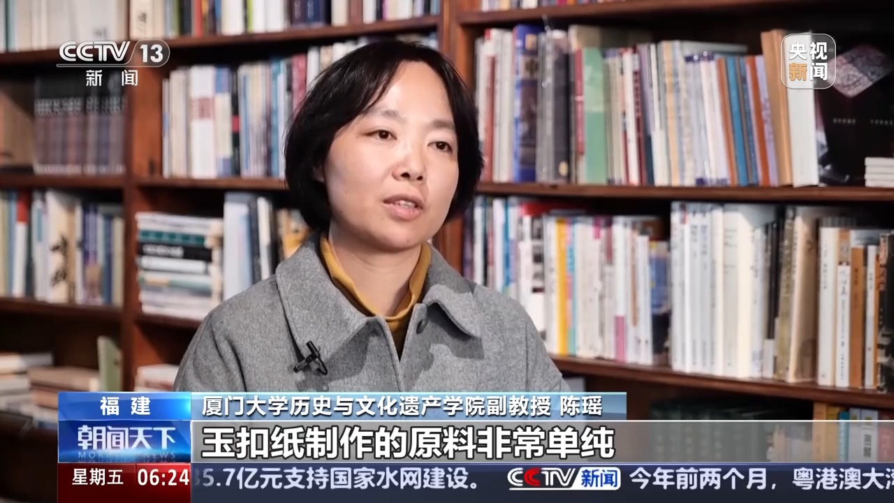*廈門大學歷史與文化遺產學院副教授 陳瑤:*玉扣紙製作的原料非常單純。就是三種,一個是竹子嫩竹,第二個是石灰,第三個就是清潔的山泉水。基本上是純靠人工來進行品質的管控。