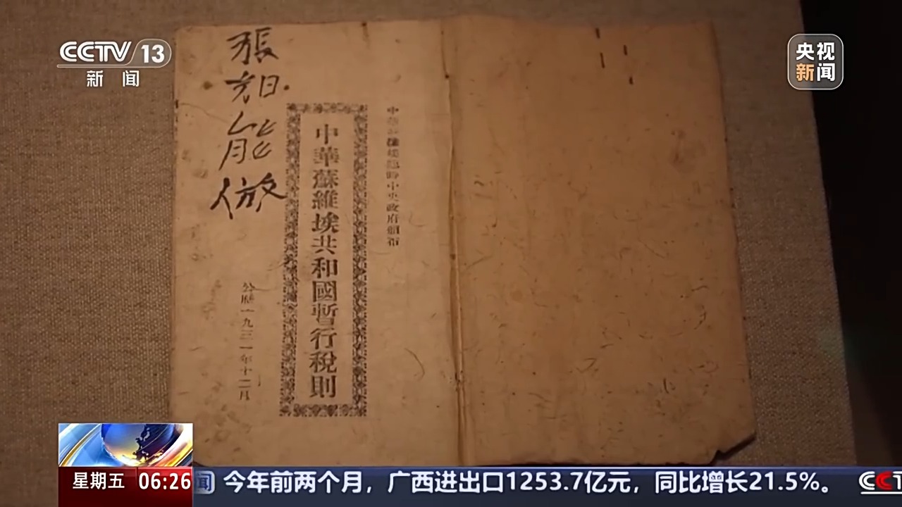 寧化縣革命紀念館講解員 邱小紅:《中華蘇維埃共和國暫行税則》是赤色中國的第一部税法,我館所展示的這本保存完整。它的封面採用的就是寧化玉扣紙。