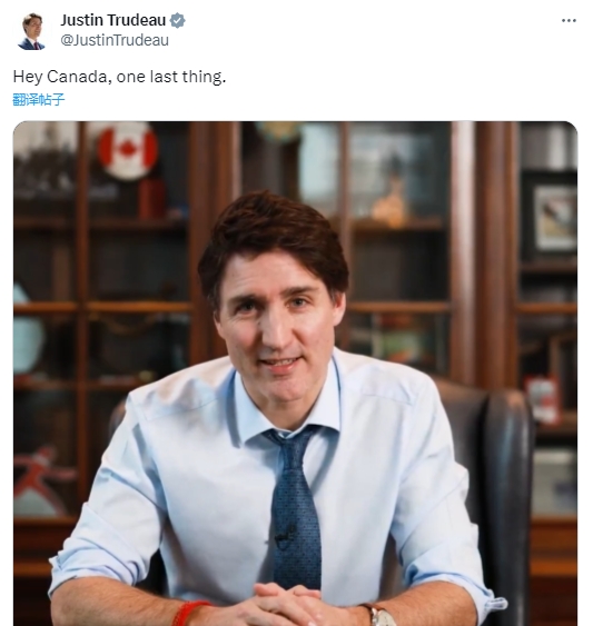 據報道,特魯多在社交媒體上寫道,“嘿,加拿大,最後一件事”,並配上了一段視頻。