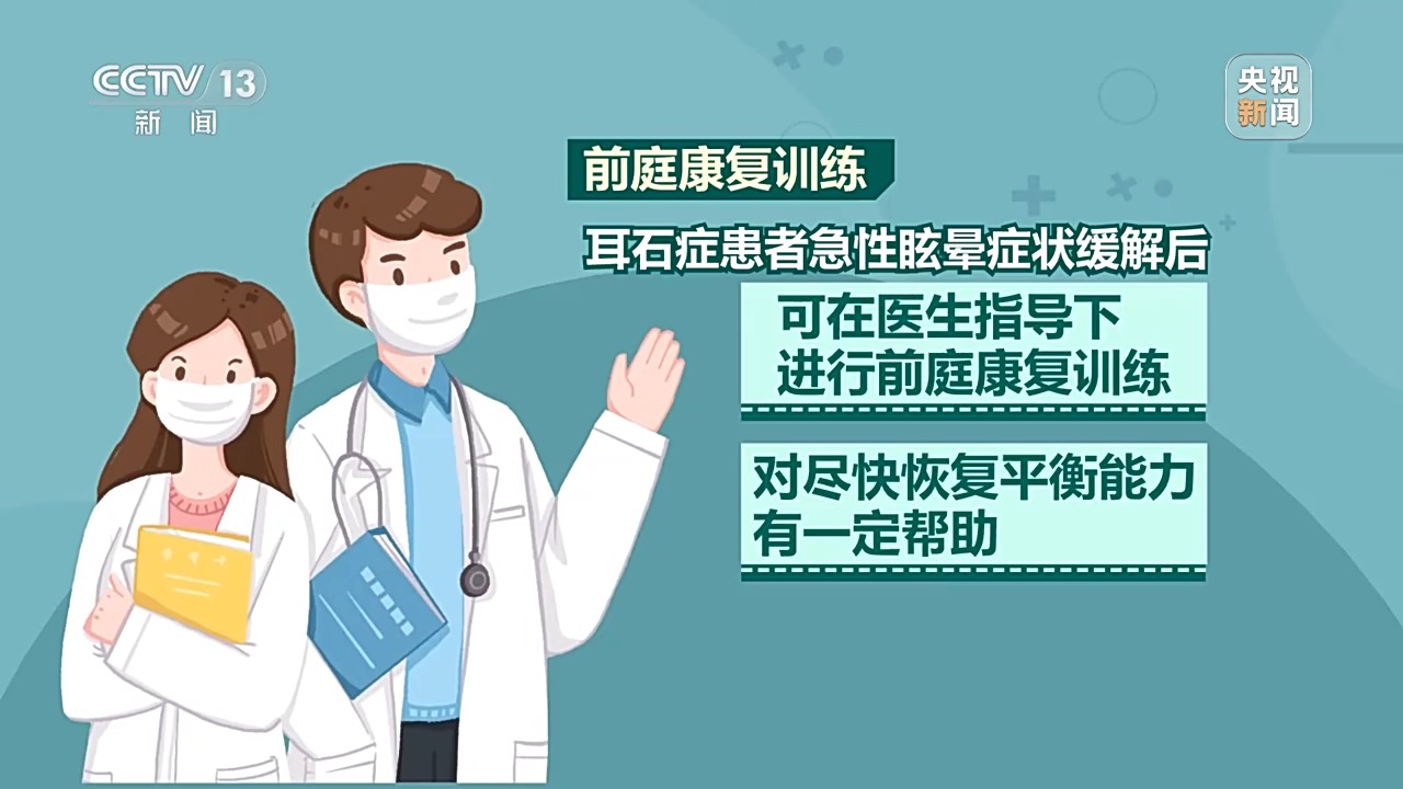 醫務人員介紹,耳石症是一種良性疾病,一般可自愈,多數人在發病後一週到一個月內,眩暈感會減輕或消失。不過,耳石症發作後很痛苦,出現上述症狀時,仍需儘快就診,緩解症狀,預防跌倒摔傷和發展成慢性耳石症,就診首選眩暈科、耳鼻喉科或神經內科。